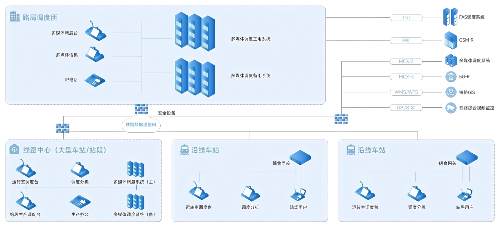 MDS6800铁路多媒体调度通信系统基于IMS架构、全IP网络设计,除传统的行车指挥语音通信外,还支持各类丰富的视频、数据信息通信等功能,实现与行车指挥相关人员的实时可视化联络,与铁路5G IN、GIS互联应用,更可直观、动态的呈现运行列车的车次、车号、行驶位置等信息,有效提升了运输调度指挥效率,为铁路下一代调度通信系统的全面升级实行准备。系统以高清音视频技术为核心,融合了网络化、数字化、智能化等ICT技术,为铁路运输生产数字化目标给予了信息基础设施和业务应用创新的双重保障。